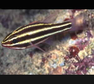 Información, cuidados y curiosidades: El pez cardenal de franja negra Ostorhinchus nigrofasciatus puede llegar a medir 10 cm de largo. Esta especie es originaria del Océano Indo-Pacífico: Desde el Mar Rojo y las islas Navidad en el Océano Índico, en las islas Tuamotu, al norte hacia el sureste de Japón, al sur hacia Nueva Caledonia y Rapa. En el este del Océano Índico vive en Mozambique.